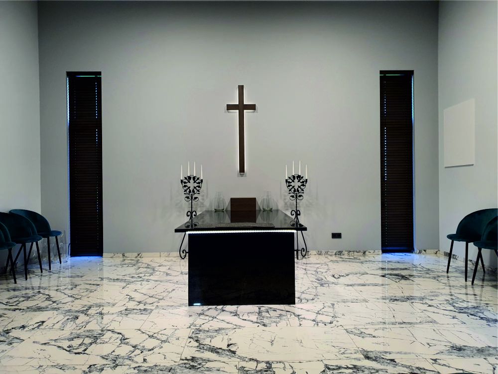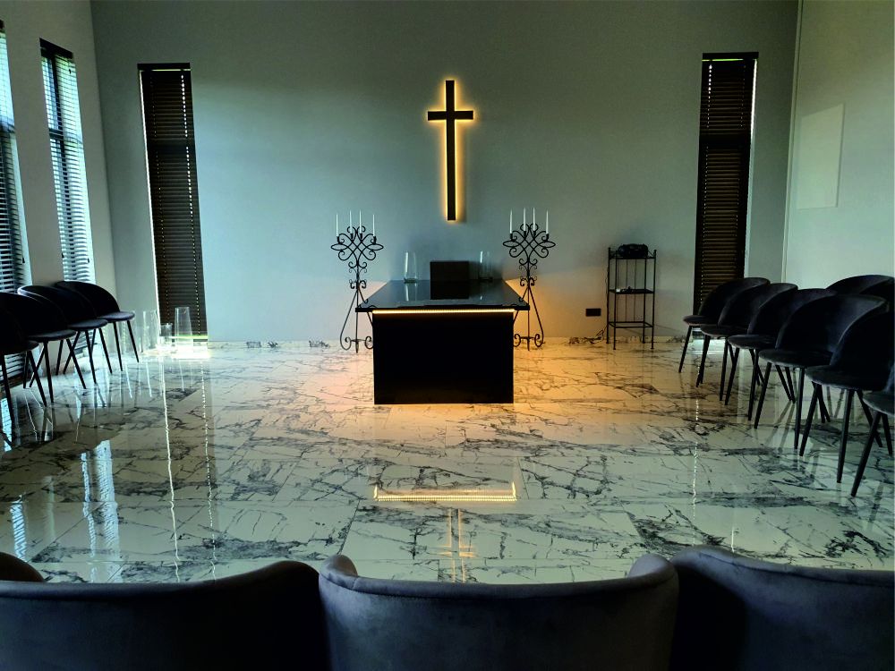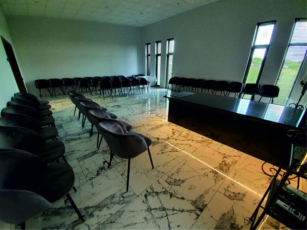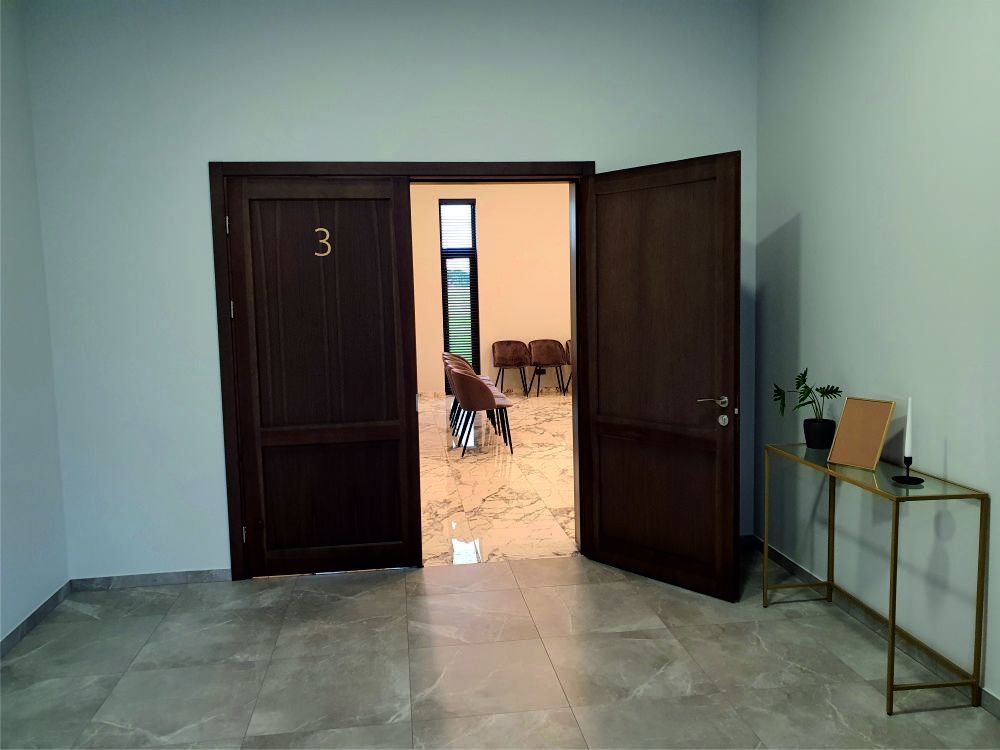 Laidojimo namuose įrengtos trys skirtingo dydžio, erdvios šarvojimo salės